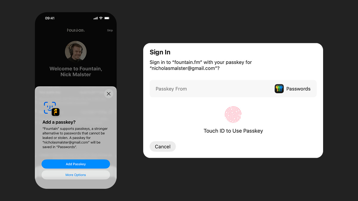 Fountain now supports Passkeys to help you keep your Nostr keys secure across all your devices.